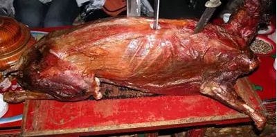 将即将临盆的母羊投入炭火中烧烤,当炭火将母羊全身烤熟之后开膛破腹把乳羊取出。 我们不能为了一时的快感,而忘了动物们的痛苦,转出去吧,让更多的人爱护动物,动物其实跟我们一样,有灵性,轮回不虚,您吃他们,下次就是他们吃您了。阿弥陀佛!
