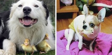 请不要惊讶,你看到的的确是一只狗和几只小鸭。英国德文郡(devon)的某个农场里,博德牧羊犬本收养了一窝的小鸭。这是感情胜过天性的最好证明。在中国,一只名花花的吉娃娃狗正保护它嘴里的那只小鸡,别误会,它可没有把它吞下。花花把小鸡当成了自己的孩子,并且保护它不受侵害。超越天性的友谊,只在一念之间。