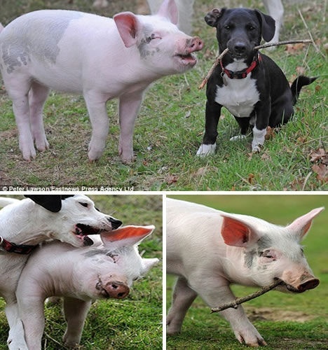 某野生救助中心救下了一只生病的5周大的小猪布鲁邓斯(prudence),那时,她的主人决定开枪杀了她。布鲁邓斯还是那么的小,救助中心的救护人员把它放在了房子附近。意外的是布鲁邓斯竟然挤进了六只小狗的世界。不久布鲁邓斯就与其中一只小狗亨利的关系密切。布鲁邓斯似乎把自己当成了狗,总是蹦蹦跳跳,追赶和取回树枝。夜里,布鲁邓斯蜷缩在小狗中间,恬然入梦。融入是友谊的真谛。