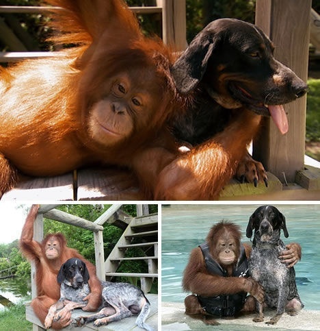 猩猩苏亚(suyia)和蓝色斑点狗罗斯科(roscoe)在莫特尔海滩(myrtle beach)初遇时便一见如故成为至交。它们相伴游走于野生动物保护区,遇到深陷危险的动物时,它们两就会竭尽全力给予帮助。如果它们没有“巡逻”,它们就会尽情玩耍游泳等。这一对的感情可谓深厚,它们的行为可称得上“侠士相伴走‘江湖’,忠肝义胆救苦难”。